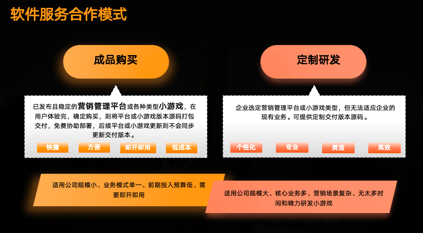 100+的纯H5小游戏库,可适配不同企业不同营销活动,特别适合企业短频快营销节奏。支持企业定制改造,无缝嵌入企业官网、小程序、公众号、app等。